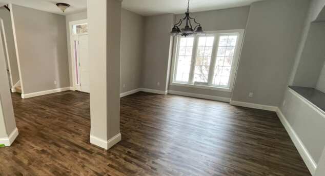 The final product showcases how a carefully chosen brown stain can transform red oak floors, breathing new life into this Stevens Point home.